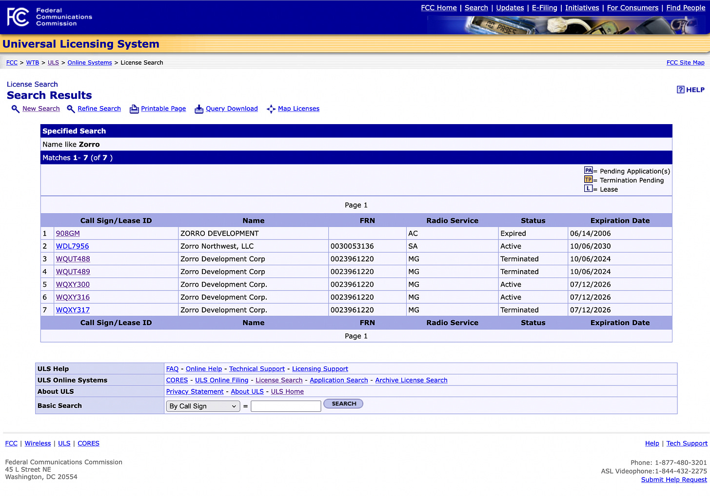 FCC records show that Zorro Development Corp., registered at 49 Zorro Ranch Road, Stanley, New Mexico, still holds two active Microwave Industrial/Business Pool licenses — call signs WQXY316 and WQXY300 — both granted July 12, 2016, and both expiring July 12, 2026. It raises an unavoidable question: who is running Zorro Development Corp. since Epstein's death, and why is its a private industrial communications network still operating on that property?